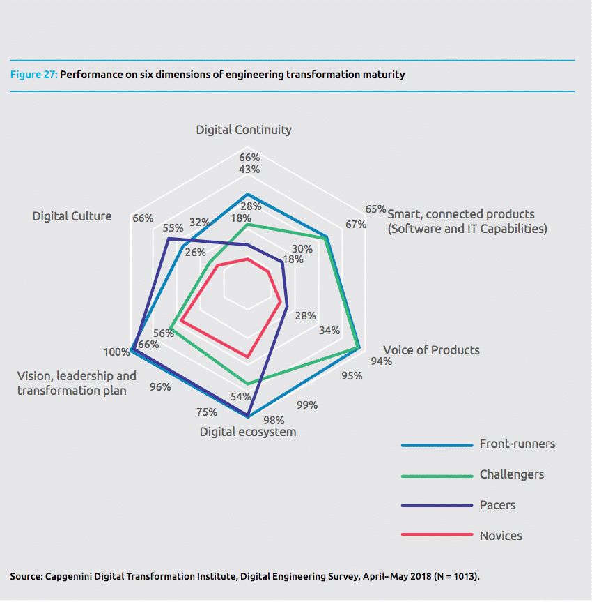 IoT is proving to be a pivotal in digitally transforming manufacturers and enabling entirely new product lines and business models. Capgemini recently interviewed over 1,000 senior executives of large, discrete manufacturing organizations around the world. The manufacturing execs predict that 47% of all their products will be smart, connected and capable of generating product-as-a-service revenue by 2020. 66% say the many challenges of sustaining legacy products while pursuing new product-as-a-service digital business models makes IoT the platform of choice.