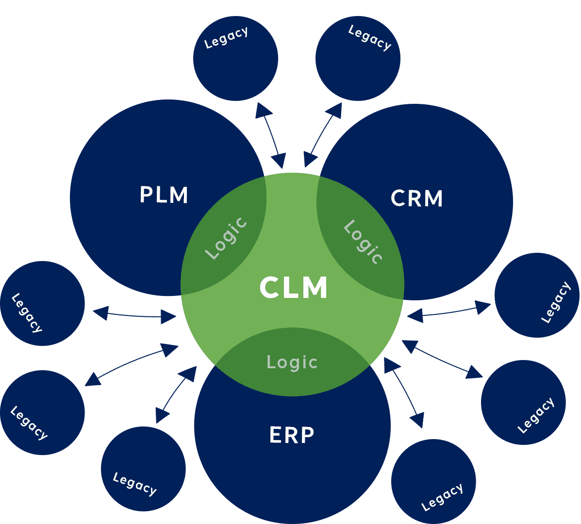 CLM is naturally a cross-functional solution that can provide a platform for collaboration between otherwise siloed organizations and functions. For example, Product Lifecycle Management (PLM) solutions define how products are architected and manufactured. However, definitions of product configuration options can be static and confined to the PLM system. By combining PLM with CLM, it is possible to support a richer and dynamic variety of configuration options and make them available to other functions.