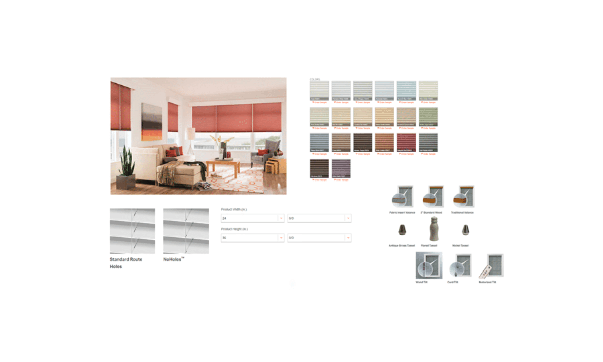 By adding in a system level blinds configurator, sales can calculate not only the room size, but the function of the room and how that effects the choices available.