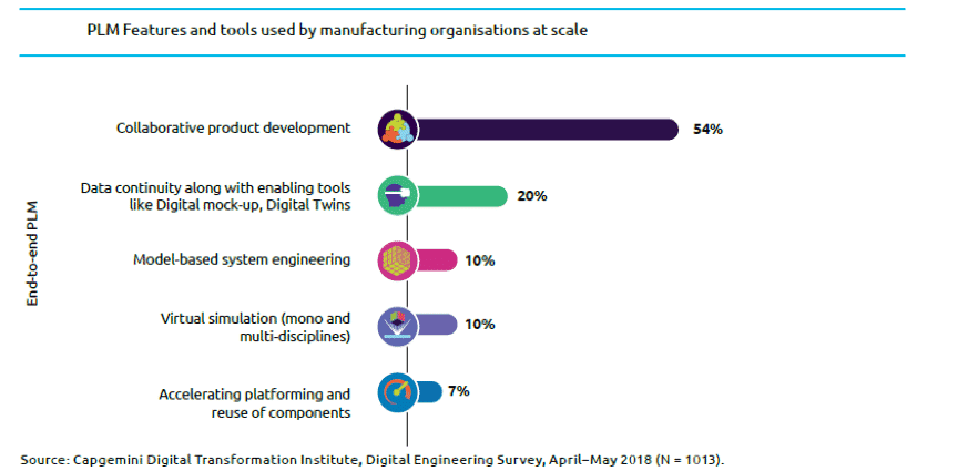 - Collaborative product development is the most popular use of PLM systems today, with 54% of manufacturers prioritizing this as their most relied on feature.